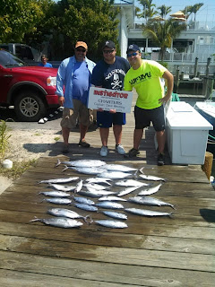 The fishing seemed to pick up a little bit today across the board. While trolling at the canyons today the “Blood Sweat, and Tears” with Captain Jeremy Blunt landed a nice 164 pound big eye tuna along with some yellow fin tuna and blue line tile. A white marlin was released among the many gaffer dolphin that were landed on the “Foolish Pleasures” with Captain Dale Lisi. (photo) The “Bill$ 4 Bills” with Captain Mike Conner returned today from an overnight with 3 yellow fin tuna and reported 2 shark releases. A nice 76 pound wahoo and a 49 pound yellow fin were landed on the “Game On” with Captain John Yost today while he was trolling at the canyons. More white marlin were released on the “Playmate” with Captain Jeremy Shandrowski and the “Moore Bills” with Captain Rob Skillman. One of our transients also released 2 whites while fishing off the coast today. One of the most impressive fishing trips today came off of the “Morning Star” with Captain Monty Hawkins who limited out on keeper flounder while fishing the wrecks and reefs today, that is 100 flounder!! The flounder were caught alongside some keeper sea bass and throwbacks of both species. Also fishing inshore today was Captain Dave Wentling on the “Instigator” who returned from his half day trip with plenty of Bonita, false albacore, and bluefish! (photo). As always Captain Mark Sampson released a variety of shark species during his 1/2 day inshore trip today. While the offshore and inshore fishing seemed to pick up today so did the bay fishing. On his morning trip Captain Nick Clemente returned with 7 keeper flounder and some throwbacks. (photo) Captain Mikey Walsh on the “Bay Bee” had a similar day today with a keeper flounder in the morning and 3 keepers in the afternoon along with throwbacks! Overall the fishing right now seems to be improving! Book your trip with Ocean City’s Premier Charter Fleet today! If you have any questions or would like to make a reservation please feel free to give us a call we would love to hear from you!!! (410) 213 1121