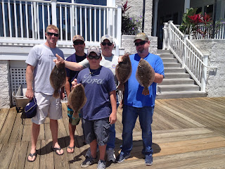 AFTER 2 DAYS OF BOATS BEING STUCK AT THE DOCK DUE TO HIGH WINDS AND ROUGH SEAS WE HAD A FEW VENTURE OUT TODAY. CAPT. JON YOST ON THE “GAME ON” RETURNED WITH 5 YELLOWFIN TUNA AND 3 GAFFER DOLPHIN. CAPT. ROB SKILLMAN ON THE “MOORE BILLS” RETURNED WITH 2 YELLOWFIN AND 3 DOLPHIN. CAPT. MARK RADCLIFFE ON THE “HUSEVO” CAME IN WITH 5 YELLOWFIN TUNA AND 4 DOLPHIN. CAPT. TERRY MURRAY ABOARD THE “REEL ATTITUDE” CAME IN WITH 2 DOLPHIN. CAPT. JEREMY BLUNT ON THE “WRECKER” FISHED A HALF DAY AND RETURNED WITH 2 GAFFER DOLPHIN AND 2 SMALLER DOLPHIN. CAPT. NICK CLEMENTE ON THE “GET SUM” CAUGHT 4 KEEPER FLOUNDER AND A BUNCH OF THROWBACKS IN THE MORNING AND A BASKET OF CRABS AND CLAMS IN THE AFTERNOON (PHOTO BELOW). CAPT. CALE ON THE “BAY BEE” CAUGHT KEEPER FLOUNDER ON BOTH AM AND PM TRIPS AS WELL AS MANY THROWBACKS.