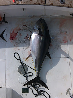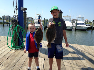 OFFSHORE: Early this morning the “Foolish Pleasures” with Captain Dale Lisi returned from an overnighter which was very successful! The crew returned with a total of 6 big eye tuna, 2 yellow fin, a blue fin and a very nice gaffer dolphin.(see photo) A few of our boats took normal day trips to the canyons and had some luck. The “Moore Bills” with Captain Rob Skillman went marlin fishing and found a few releasing 2 whites today. Captain Terry Murray on the “Reel Attitude” took a day trip and returned with 2 50 pound yellow fin released a handful of other smaller tuna and came back with a nice gaffer dolphin (see photo) . The “Game Changer” had a similar day as well and reported 2 yellow fin tuna. INSHORE: The fish were biting this morning! Captain Cale Layton on the “Bay Bee” had a few keepers and plenty of throwbacks this morning and again on their afternoon trip. Four keeper flounder were brought back by Captain Nick Clemente on the “Get Sum” who had a busy afternoon and evening with throwbacks, crabs, and clams! On the “OC Guide Service” Captain John Prather had 2 keepers in the morning and took a bow fishing trip this afternoon and saw a few rays. (see photo) We are anticipating a busy few days, and have been busy putting together make-up trips and booking charters. Don’t miss your opportunity to fish with Ocean City’s Premier Charter Fleet and book your trip today!!! If you have any questions or would like to make a reservation please feel free to stop on by or give us a call we would love to hear from you!!!! (410) 213 1121