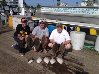 Offshore forecasts today kept the fleet from fishing at the canyons today. However inshore fishing was manageable and Captain Monty Hawkins on the “Morning Star” reported a good day of sea bass fishing! Finally after a few days of less than ideal conditions we were able to get out and fish the bays. Captain Cale Layton on the “Bay Bee had an afternoon trip that consisted of throwback flounder and plenty of smiles! On the “Get Sum” Captain Nick Clemente had a great morning today with 9 keepers. It seemed to be that maybe the tide was in the afternoon or the water cleared up because his afternoon trip had 11 keepers. (see photos) The hot ticket for flounder seems to be Gulp! of the pearl white variety. Don’t miss your opportunity to fish with Ocean City’s Premier Charter fleet book your trip today. Remember fishing trips make great graduation and father’s day gifts!!! If you have any questions or would like to make a reservation please feel free to stop on by or give us a call we would love to hear from you!!! (410) 213 1121