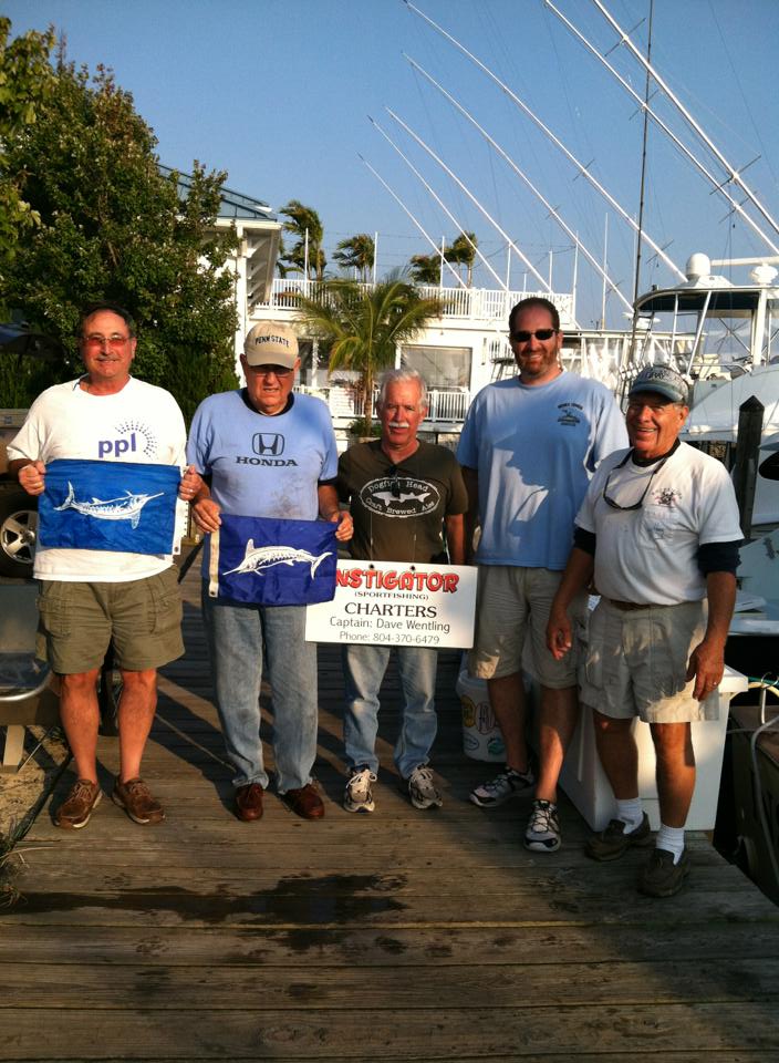 and tuna today. Captain Franky Pettolina on the “Last Call” returned with a few white marlin releases. Aboard the “Instigator” with Captain Dave Wentling two customers released their first white marlin, congrats gentleman!!! (photo) A few of our other boats including the “All In” and “Fugitive” had yet to return when the report was published. Check back tomorrow to see how they did! Bay fishing is still producing decent numbers of throwbacks, and few keepers when you can get a good drift set up. Aboard the “Bay Bee” with Captain Mikey Walsh had plenty of throwbacks today and one keeper. Two nice keepers were brought in by a customer who bought his bait from us and got some tips on the “local” spots to fish. The keepers weighed in at 5.3 pounds and 3.11 pounds.(photo) Don't miss our Spot Tournament tomorrow come down tomorrow for some great times and tight lines!!! If you have any questions or would like to make a reservation please feel free to give us a call we would love to hear from you!! (410) 213 1121